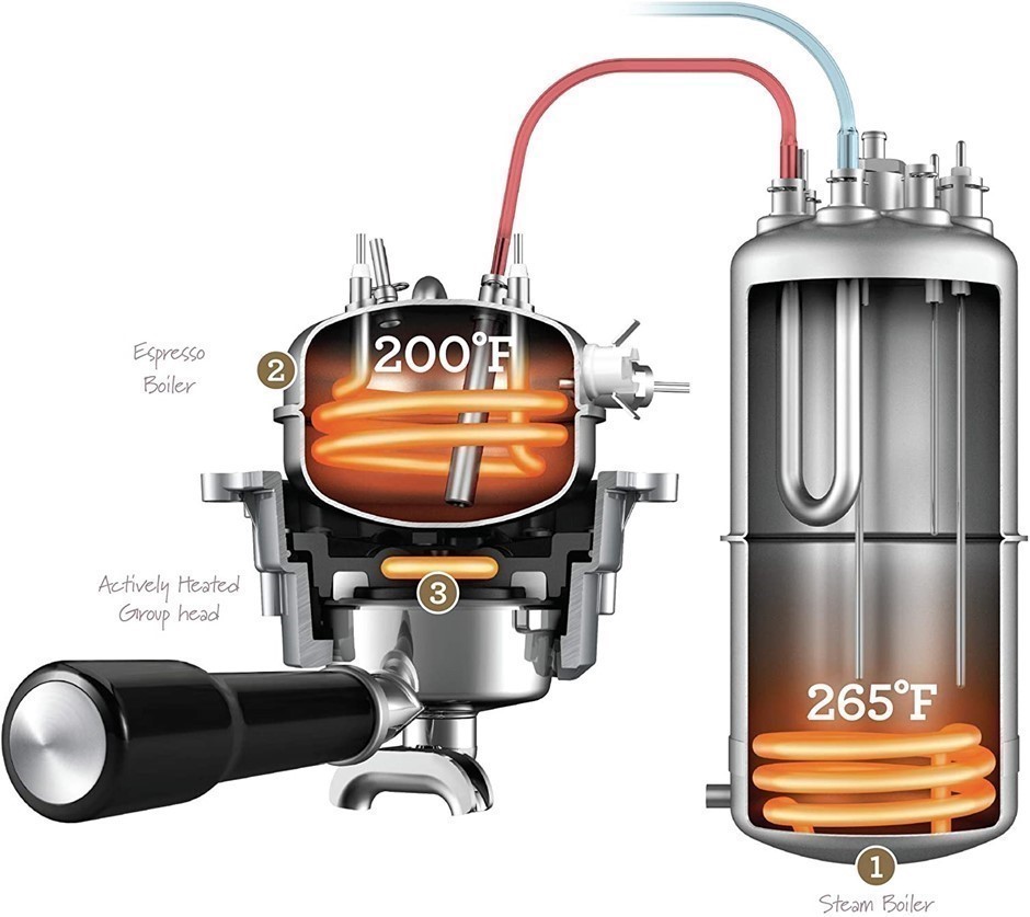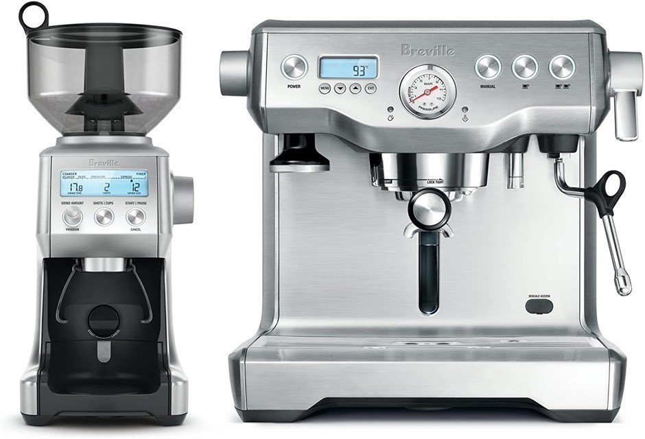 BREVILLE The Dynamic Duo Espresso Machine with Grinder, Brushed Stainless S