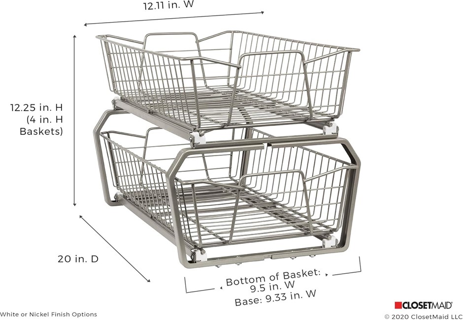 CLOSETMAID 3608 2 Tier 11-Inch Kitchen Cabinet Organizer, White.