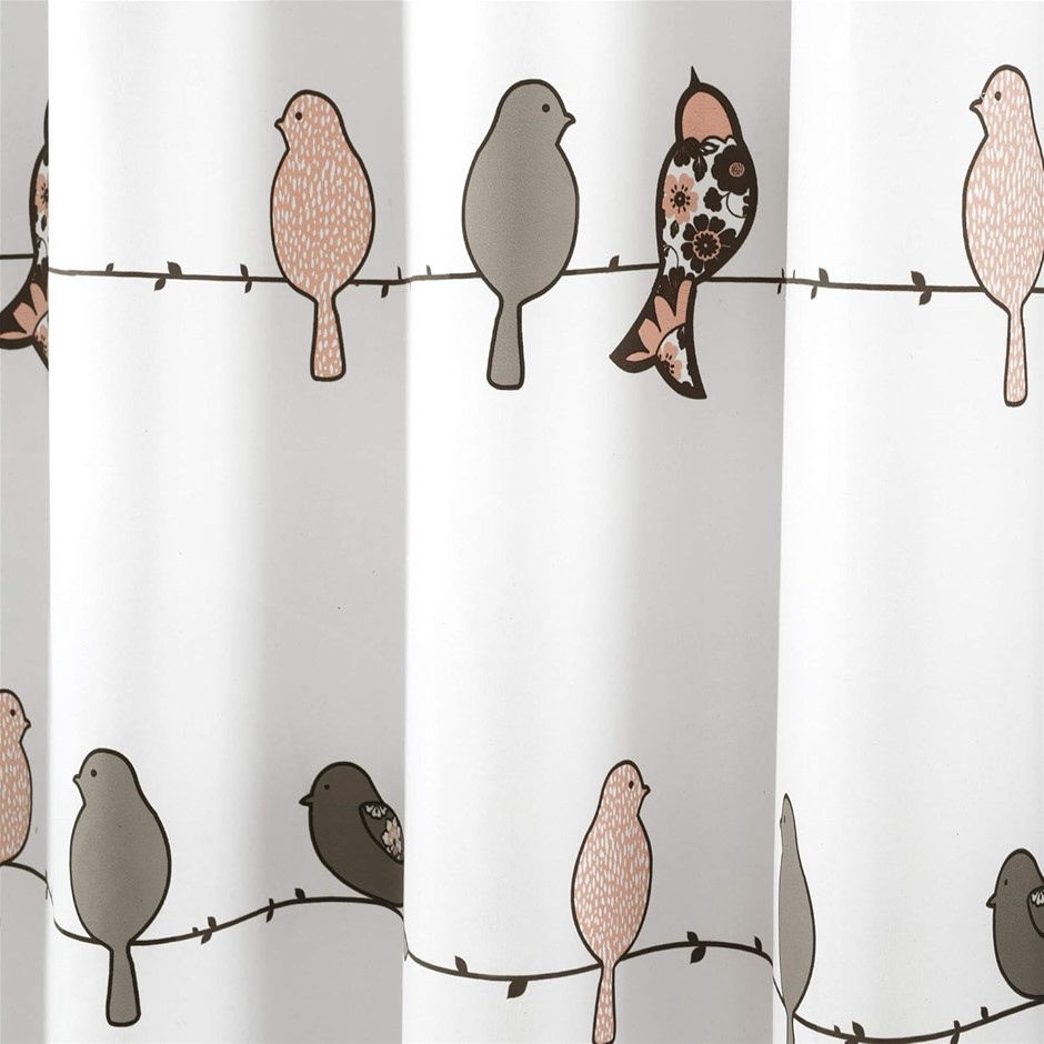 LUSH DECOR Rowley Birds Shower Curtain, 72” W x 72” L, Blush & Gray - Color Lot No: 0118-3140586 |