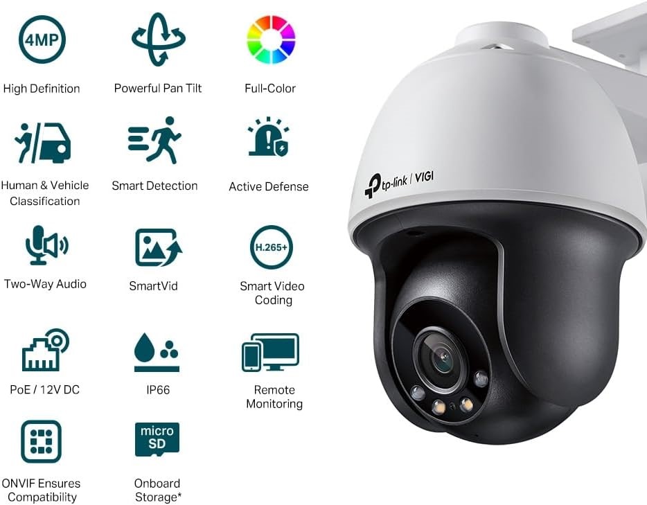 TP-LINK VIGI 4MP Outdoor Full-Colour Pan Tilt Network Camera, 4mm Lens, Sma