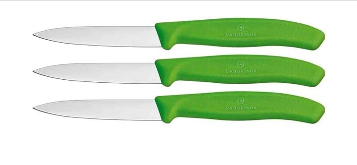 3 x Victorinox - Paring Knife Green with Pointed Tip 8cm (Made in Switzerla