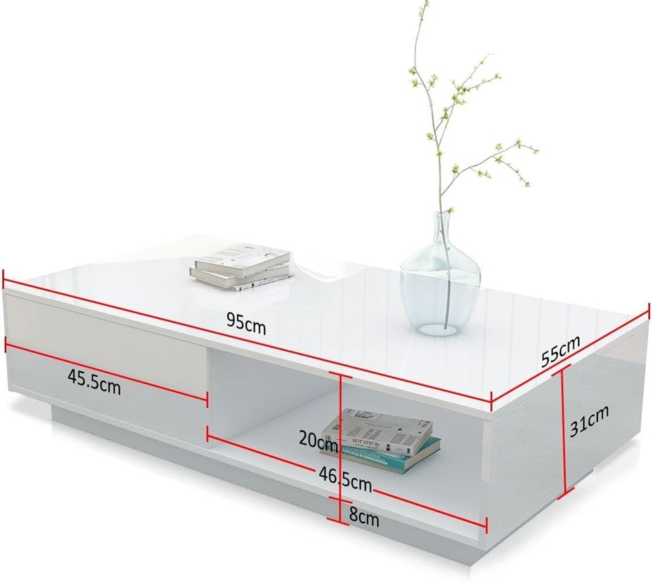 AUSWAY Coffee Table Storage with 1 Drawer Shelf, High Gloss Front Wood Mode