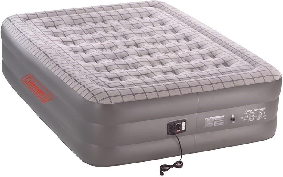 COLEMAN 240V Double Quick Airbed with Pump, Grey/Grid, Queen, 1217506.