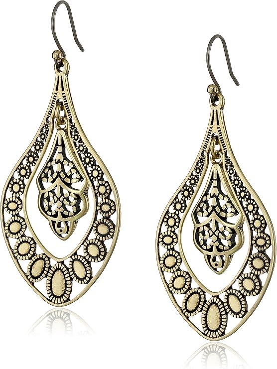 LUCKY BRAND Sahara Dust Filigree Oblong Earrings, Hypoallergenic, Colour: G
