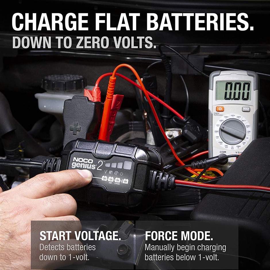 NOCO 2-Amp Fully-Automatic Smart Charger, 6V & 12V Battery Charger. Model G Lot No: 0017-3140552 |