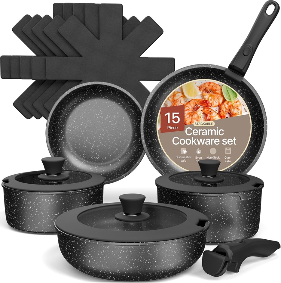 Bakken-Swiss Detachable 15-Piece Cookware Set – Granite Non-Stick – Eco-Fri Lot No: 0104-3140565 |