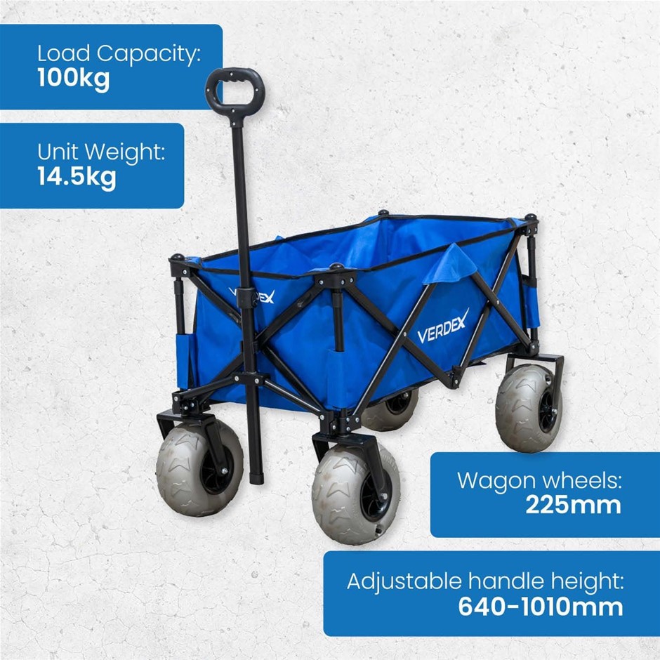 GENERIC Verdex Folding Beach Wagon Trolley with Pump-Up Sand Wheels, Blue. Lot No: 0060-5061923 |