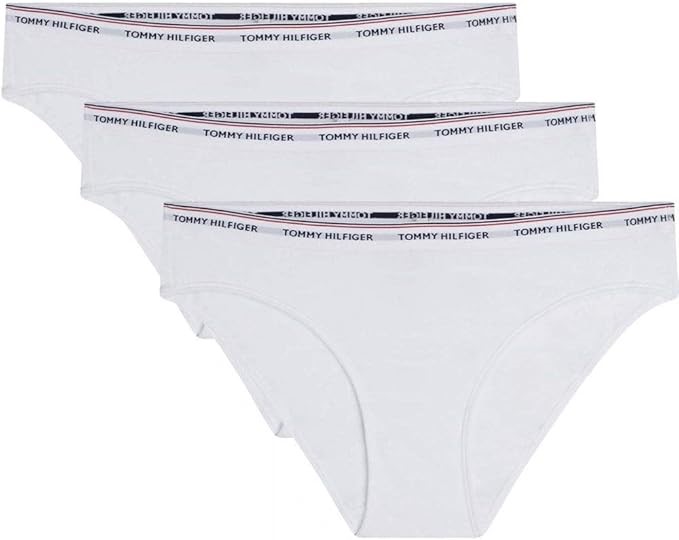 3-Pack TOMMY HILFIGER Women's Bikini Underwear, Size M, White (100), UW0UW0