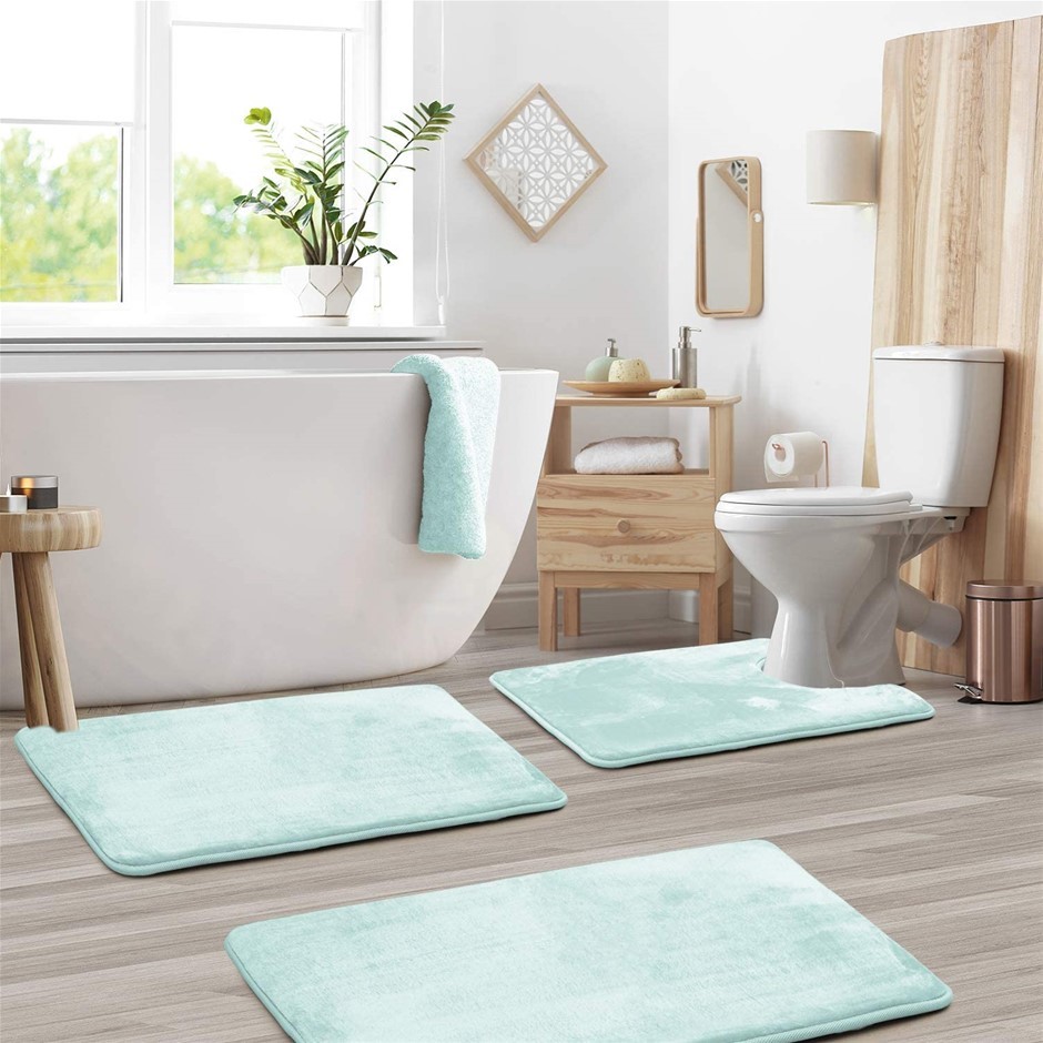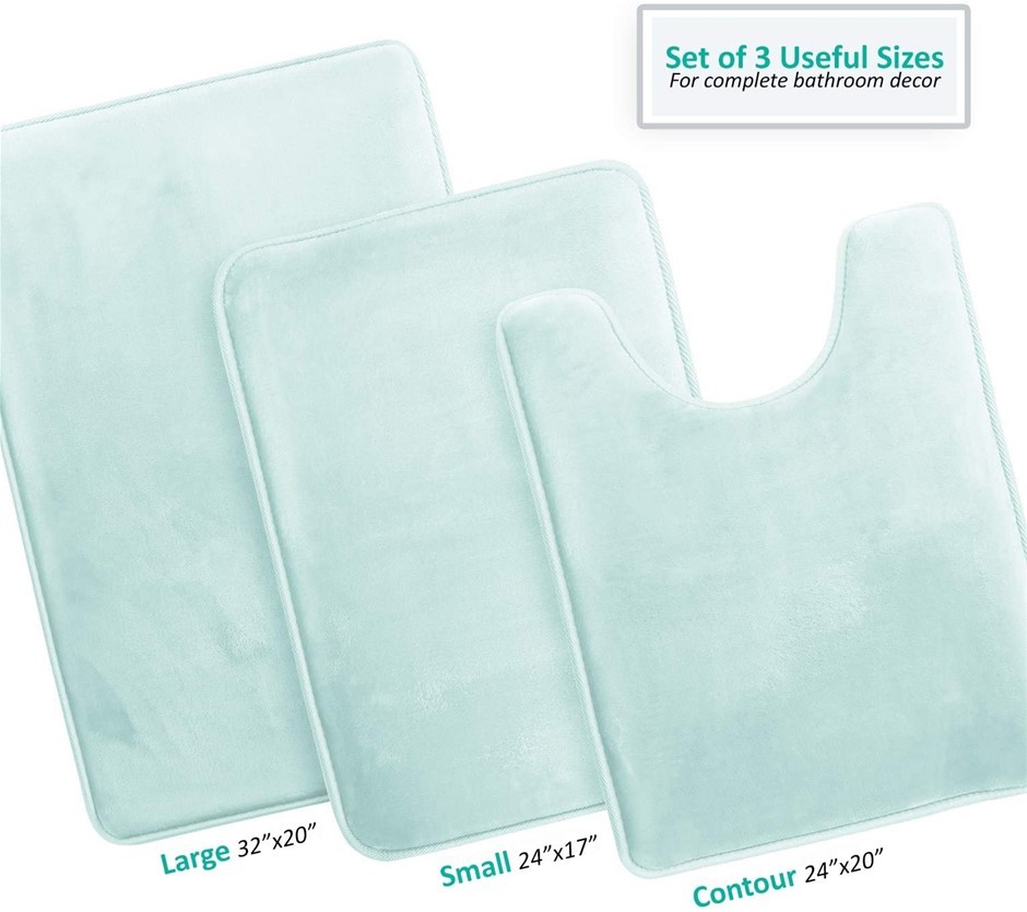 CLARA CLARK 3 Piece Velvet Memory Foam Bathroom Mat Set. Non-Slip, PVC Bac