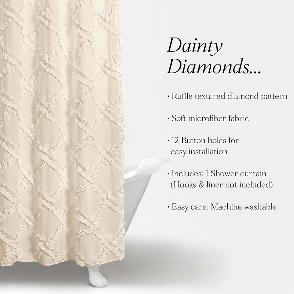 LUSH DECOR Ruffle Diamond Shower Curtain, Textured Shabby Chic Farmhouse St Lot No: 0107-3140524 |