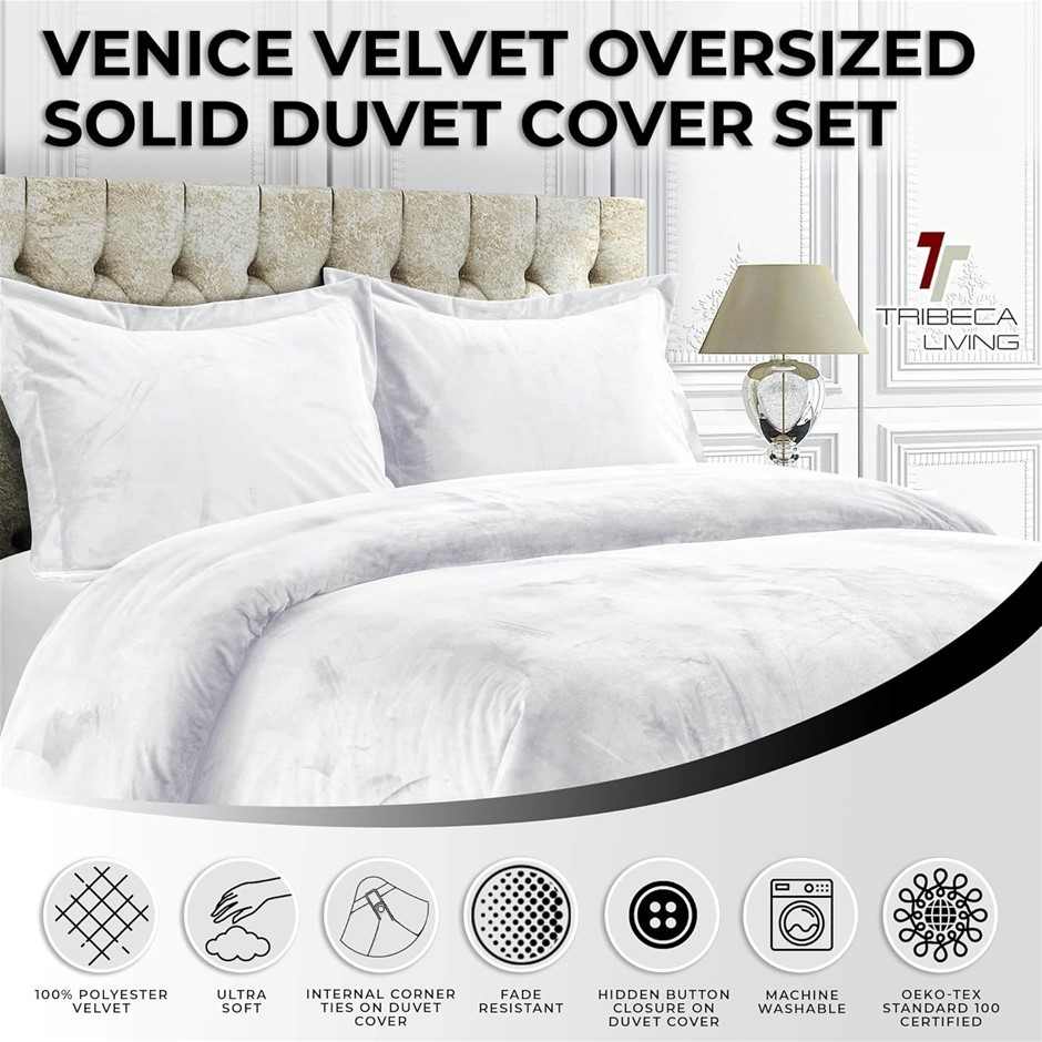 TRIBECA LIVING Venice Velvet Oversized Duvet Set, Luxurious 3-Piece Set. Si