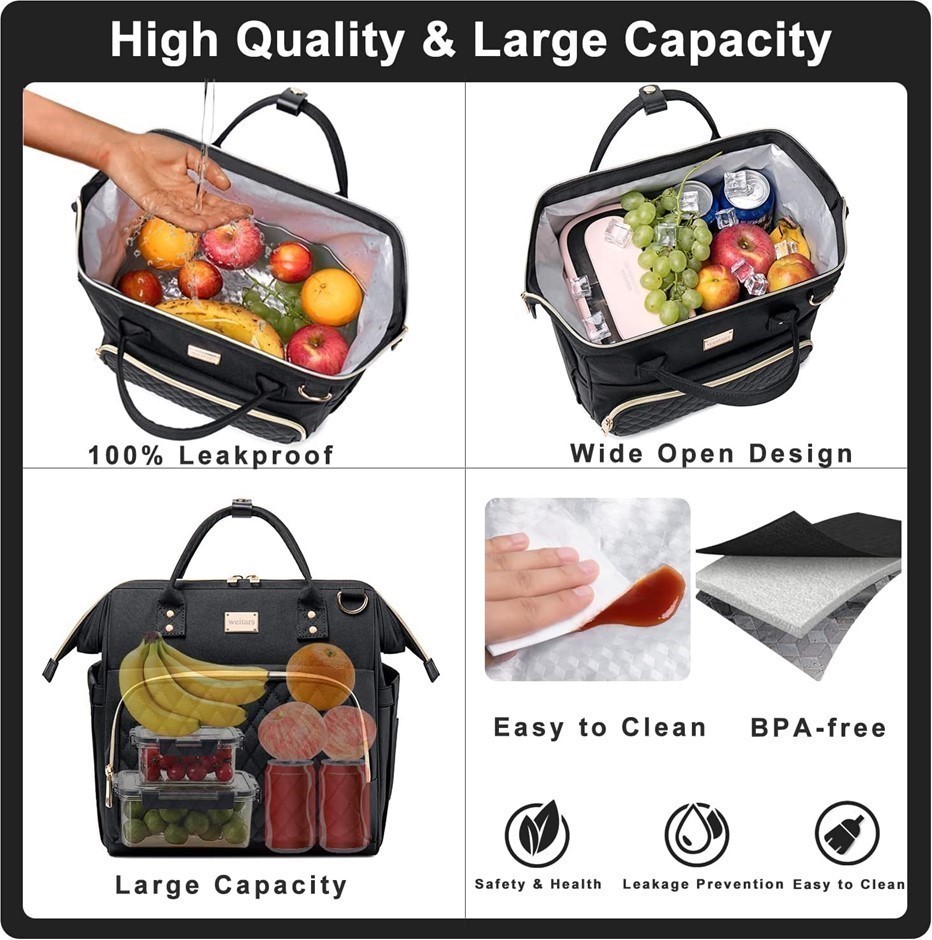 WEITARS Insulated Lunch Bag for Women, Leak Proof w/ Side Pockets & Should