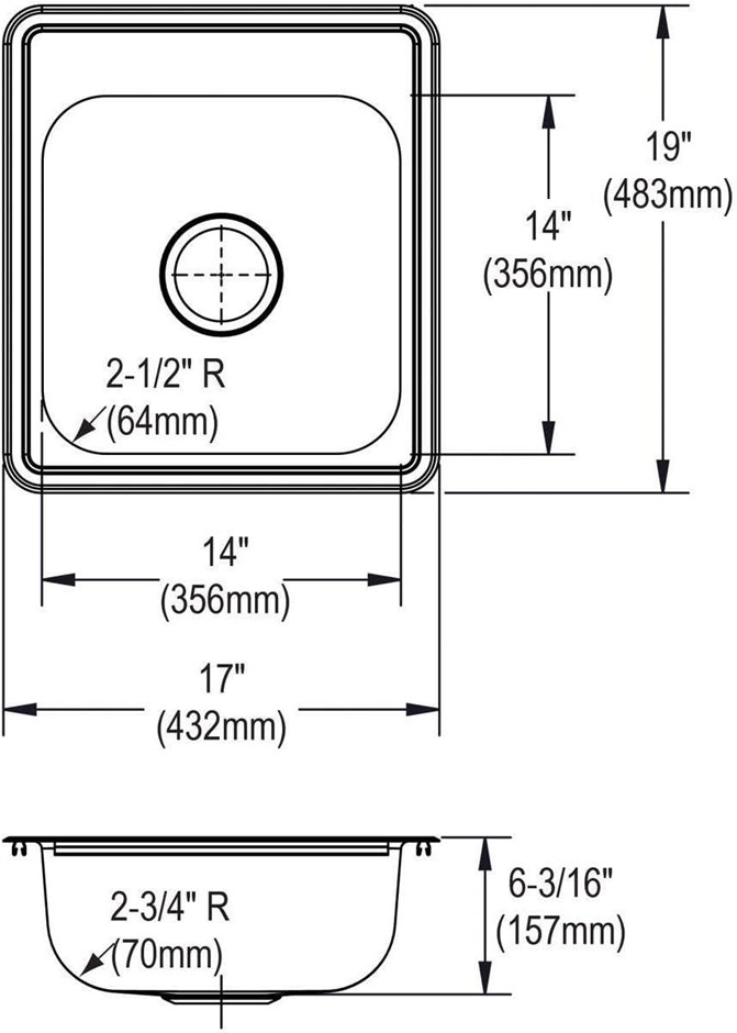 DAYTON D117192 Single Bowl Top Mount Stainless Steel Bar Sink, 2 Holes. Lot No: 0042-5061912 |