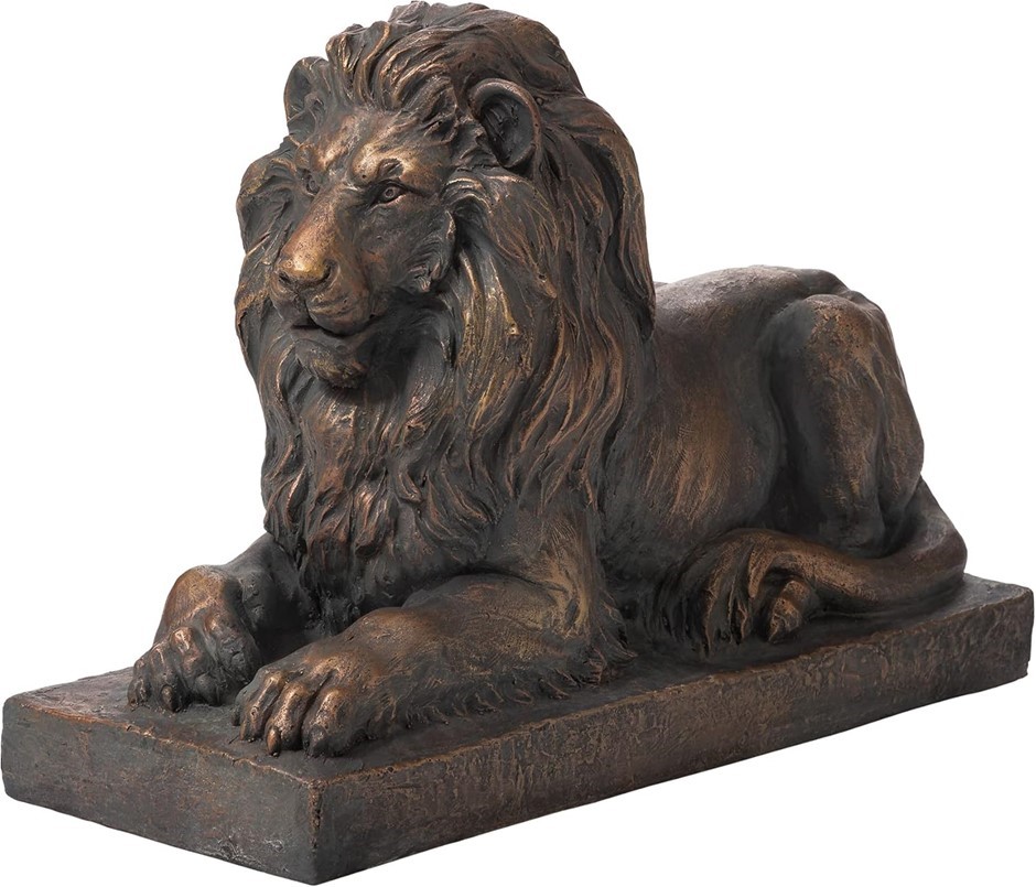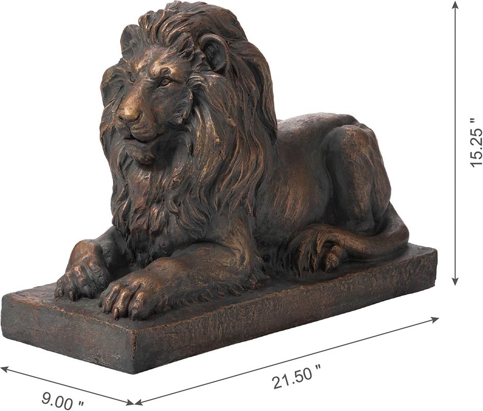 GLITZHOME Lying Guardian Lion Outdoor MGO Statue, Bronze.