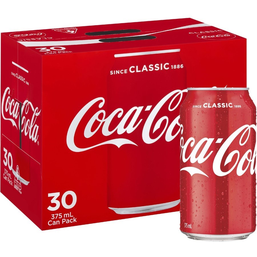 30 x COCA-COLA Classic Soft Drink Cans, 375mL.Best Before: 10/2025.