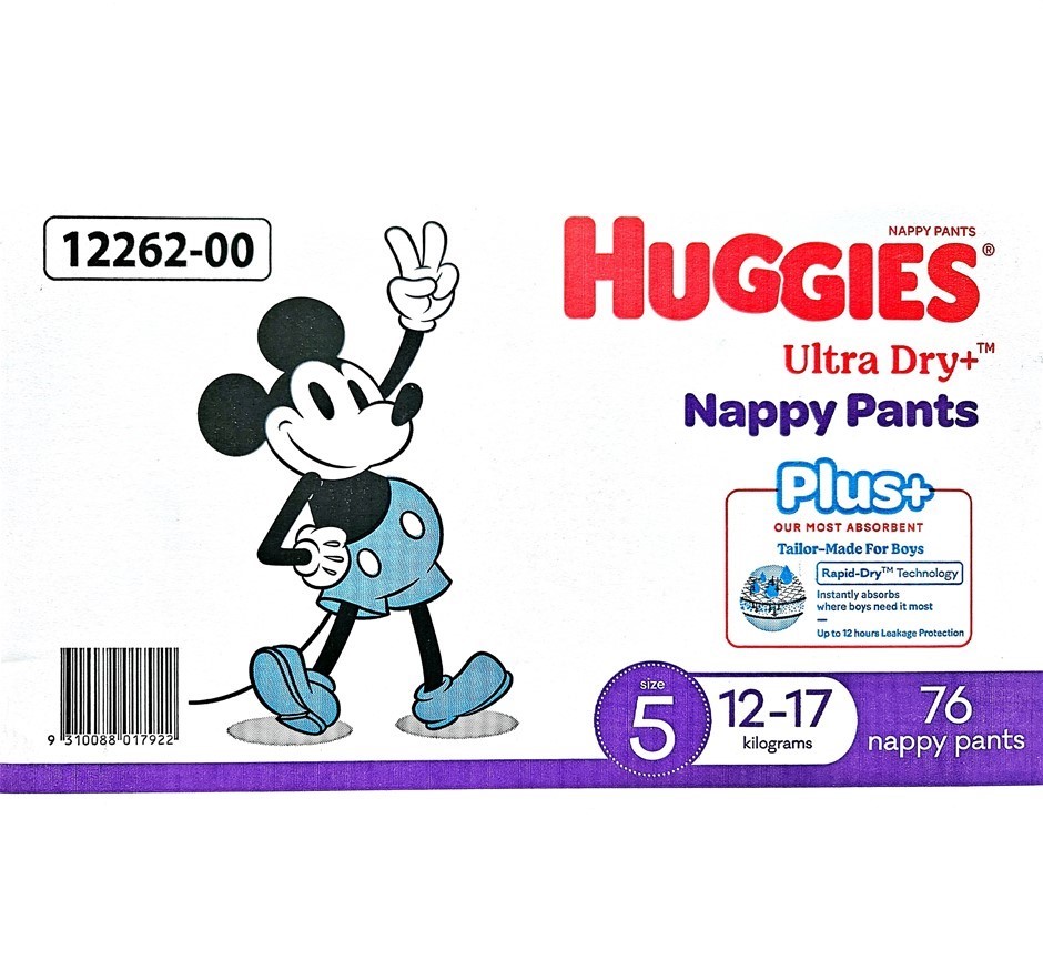 Box of 76pk HUGGIES Nappy Pants For Boys, Size 5, For 12-17kg. N.B: Damaged Lot No: 0273-5061906 |