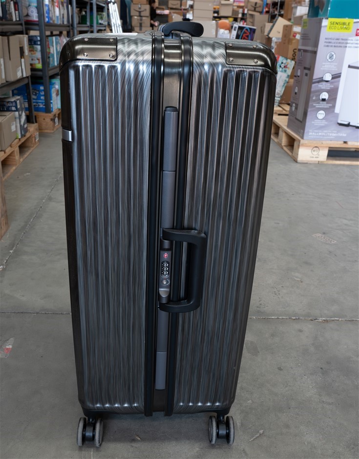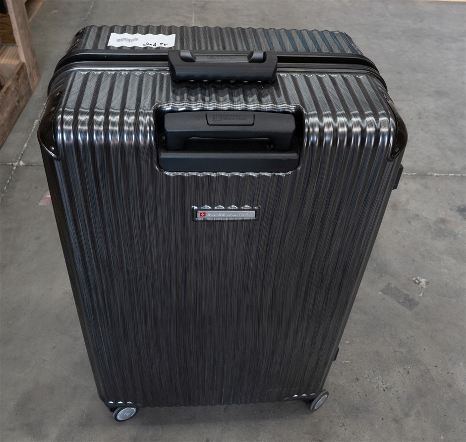 SWISS MILITARY Hard Shell Large Luggage, Black. NB: Minor use, damaged hand