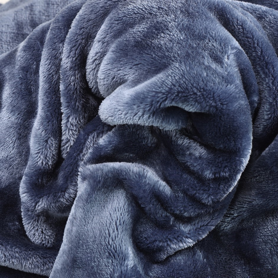 SIGNATURE Queen Size Plush Blanket, Lightweight, Navy.