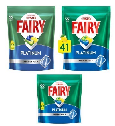 FAIRY Platinum 113 pack Diswashing Tablets, Dried on Soils, Lemon, 1x 775g,