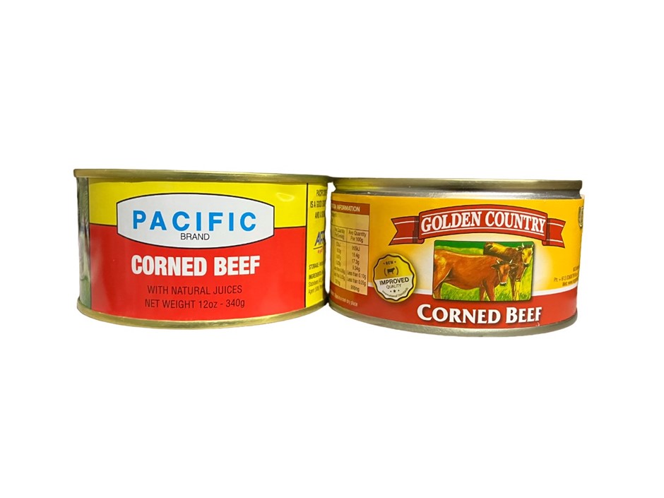 8 x PACIFIC BRAND Corned Beef 340g & 1 x GOLDEN COUNTRY Corned Beef 326g. B