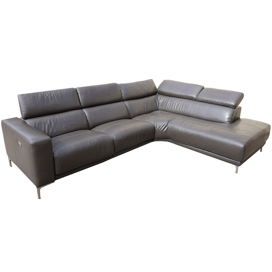 KUKA 3-Piece Leather Power Reclining Corner Sofa Lounge Set, Brown. NB: Ite