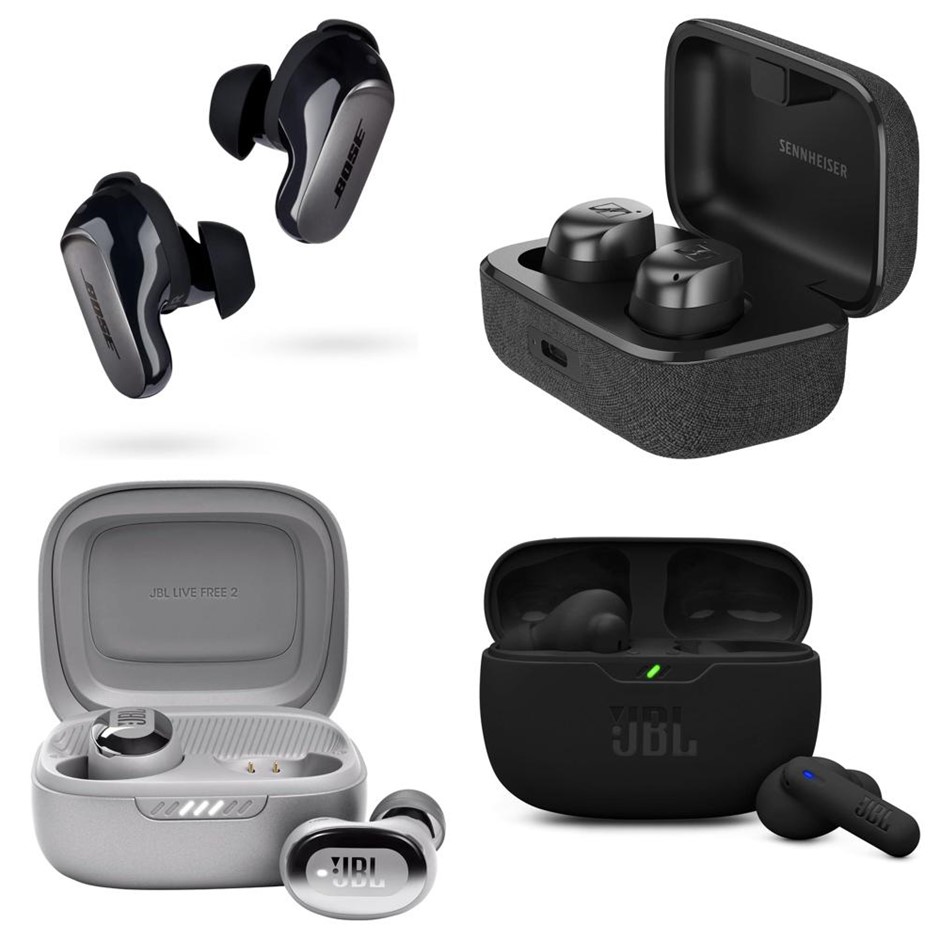 4 x Assorted Wireless Earbuds. 1 x BOSE QuietComfort Ultra. 1 x SENNHEISER