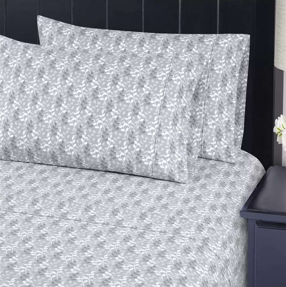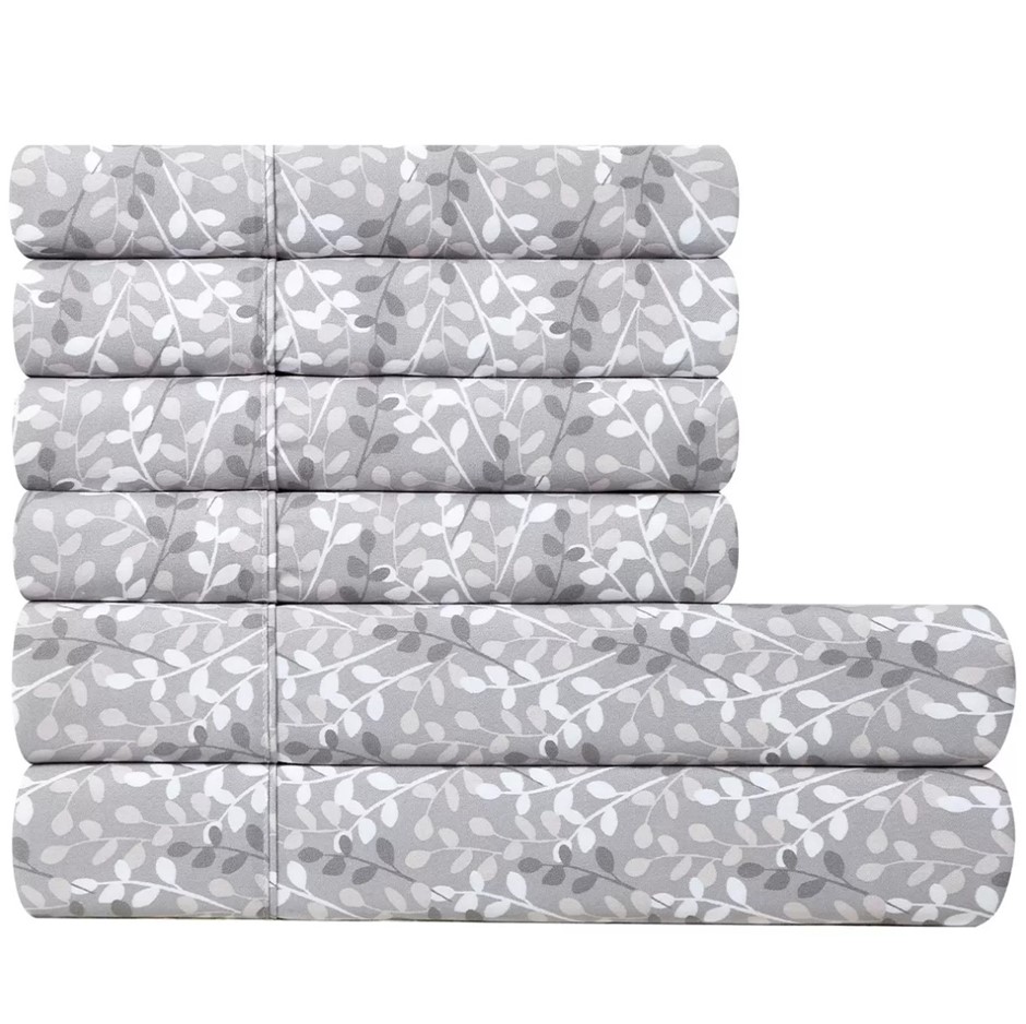 SOUTH POINT Home Fashions Poly Flannel 6-Piece Sheet Set, Queen, Dow Leaves