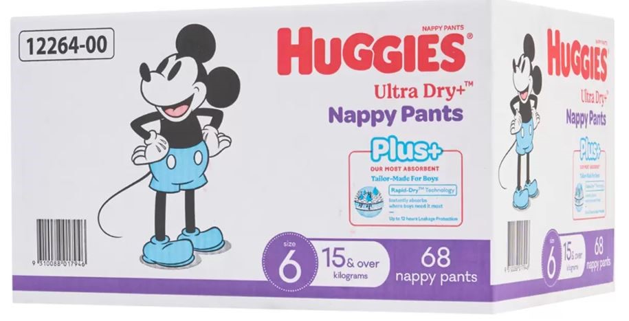 HUGGIES Boys' Ultra Dry Nappy Pants Plus Size 6, 68 Piece. NB: Not in origi Lot No: 0324-5060732 |