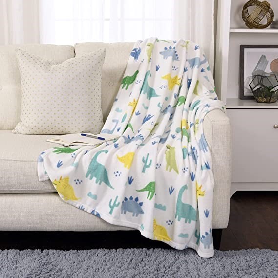 LIFE COMFORT Kids Plush Blanket, 127cm x 152cm, Dinosaur.