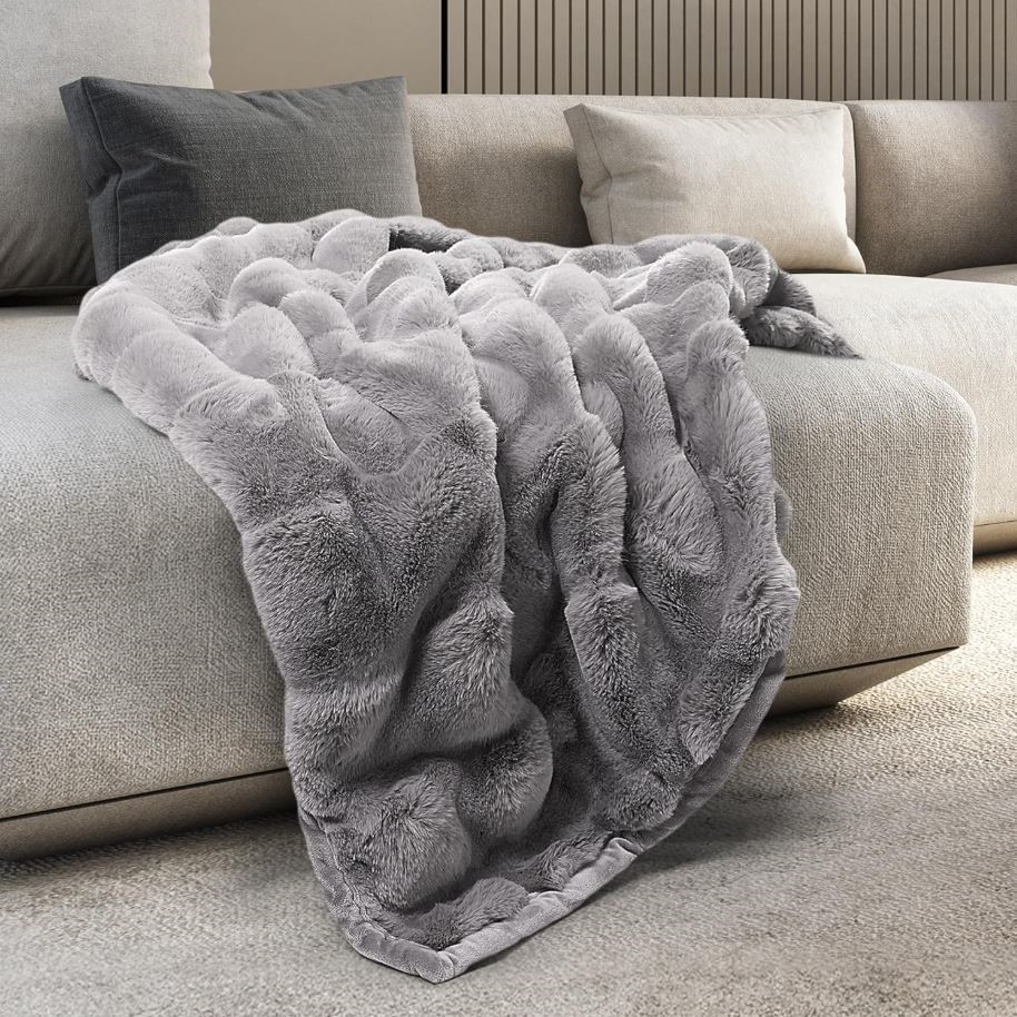 MON CHATEAU Premium Reversible Queen Size Luxury Faux Fur Throw Blanket, Gr