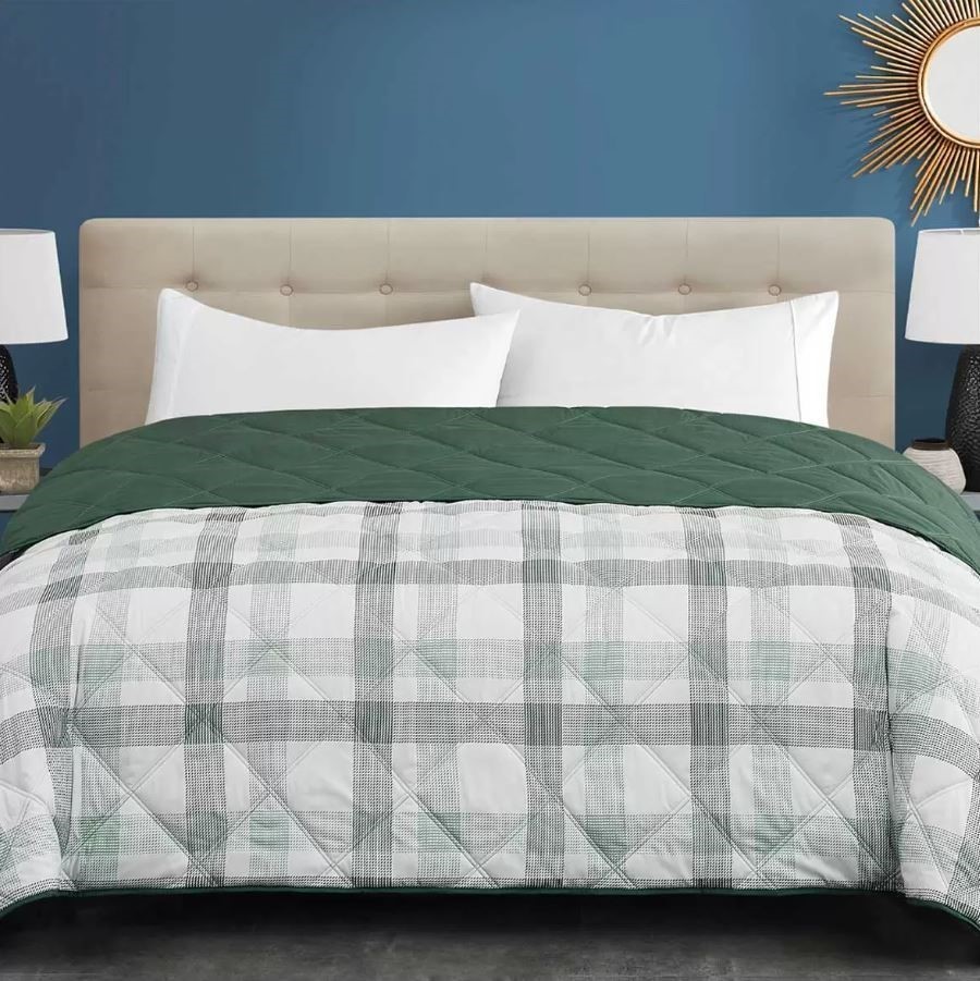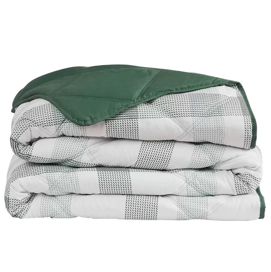 SEASONS COLLECTION Down Alternative Blanket, Queen, Green/White Plaid. NB: