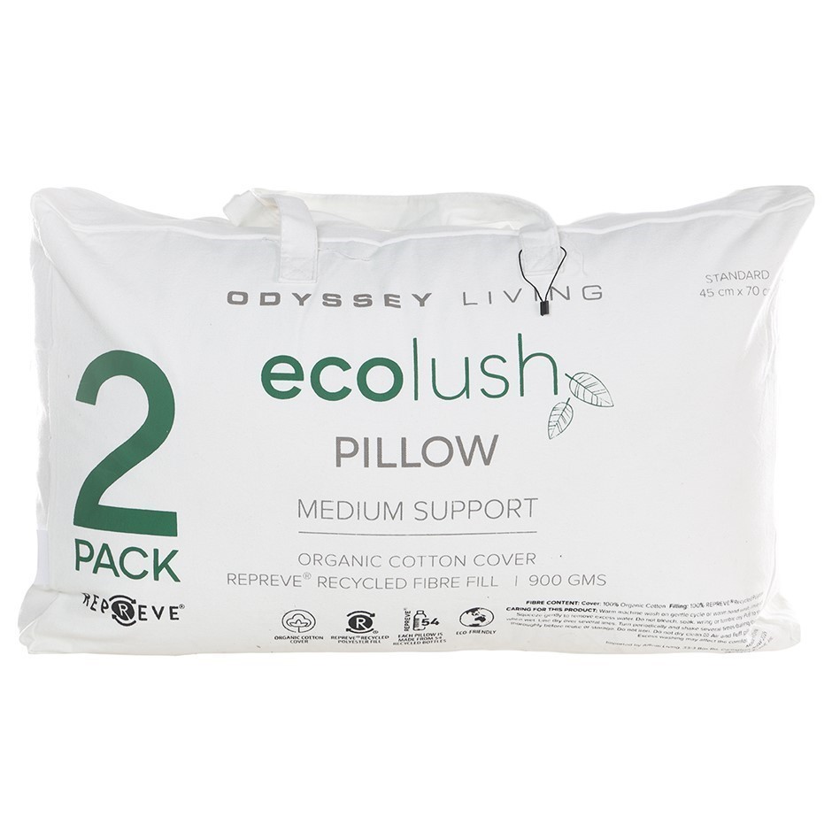 ODYSSEY LIVING 2PK Repreve Ecolush Pillow, 45cm x 70cm, White.