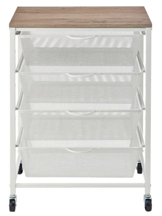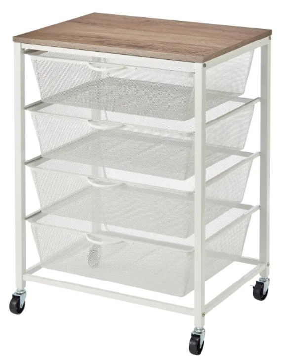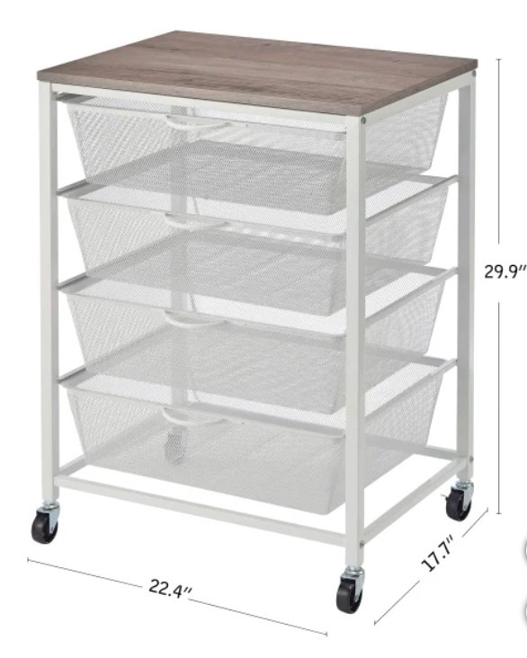 EDIFICE 4 Drawer Rolling Cart, 22.4" L x 17.7" W x 29.9" H. N.B: Missing wh