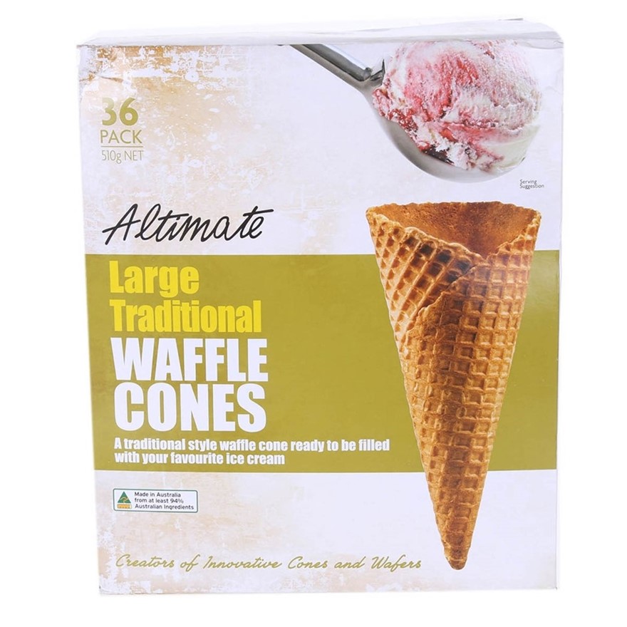 3 x Box of 36pc ALTIMATE Large Traditional Waffle Cones, 510g. N.B: Damaged