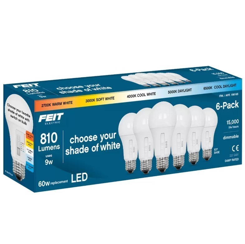 FEIT ELECTRIC 6pk LED Light Bulbs, 810 Lumens, 9W, E27 Base.