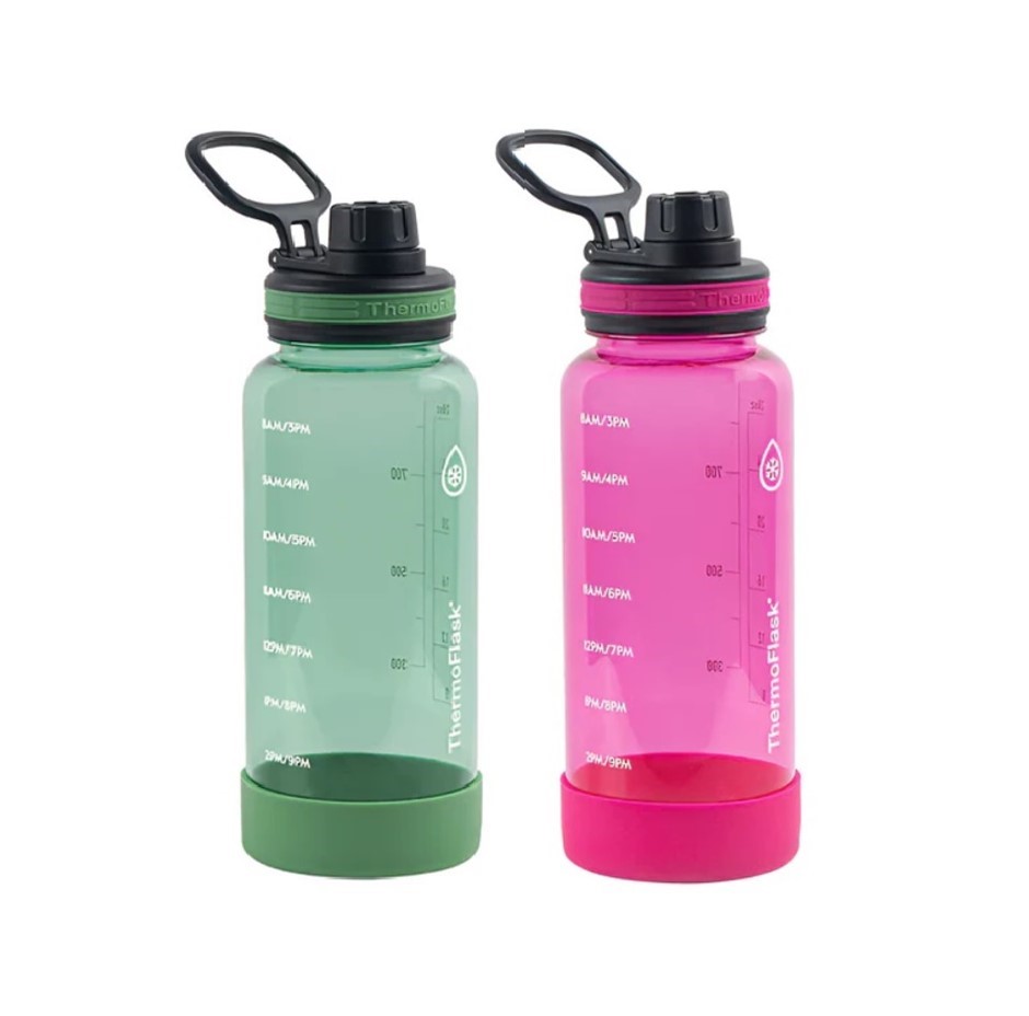 Pack of 2pc THERMOFLASK Leak Proof Spout Lid Water Bottle, 950ml, Pink & Gr