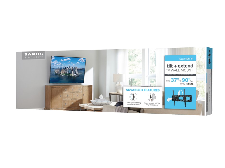 SANUS SIMPLICITY Tilt + Extend TV Wall Mount SLT3-B2, Fits 37" to 90" TVs.