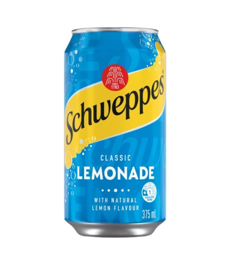 58 x SCHWEPPES Lemonade 375mL Soft Drink Cans. Best Before: 01/2026.