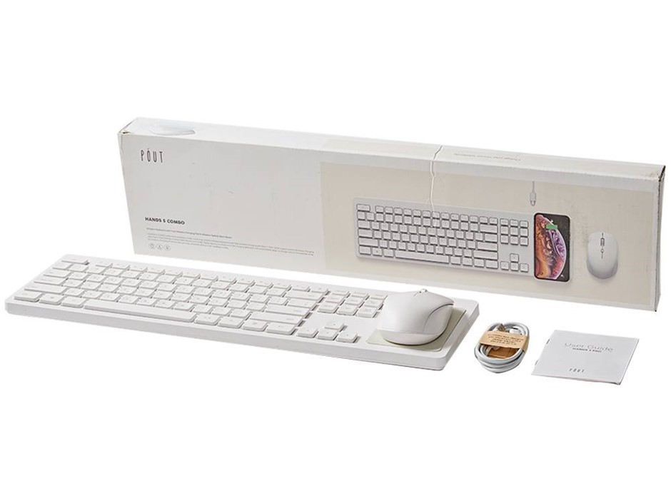POUT Hands 5 Combo Wireless Charging Keyboard & Mouse, White. NB: Minor Use