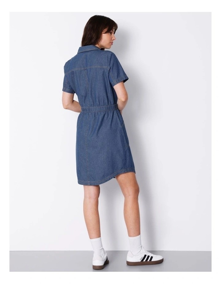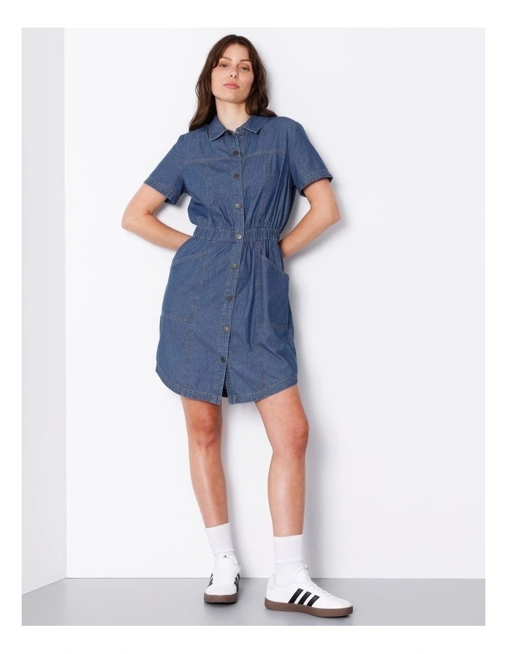 GRAB Organic Elastic Waist Denim Shirt Dress. Size: 10. Colour: Authentic B