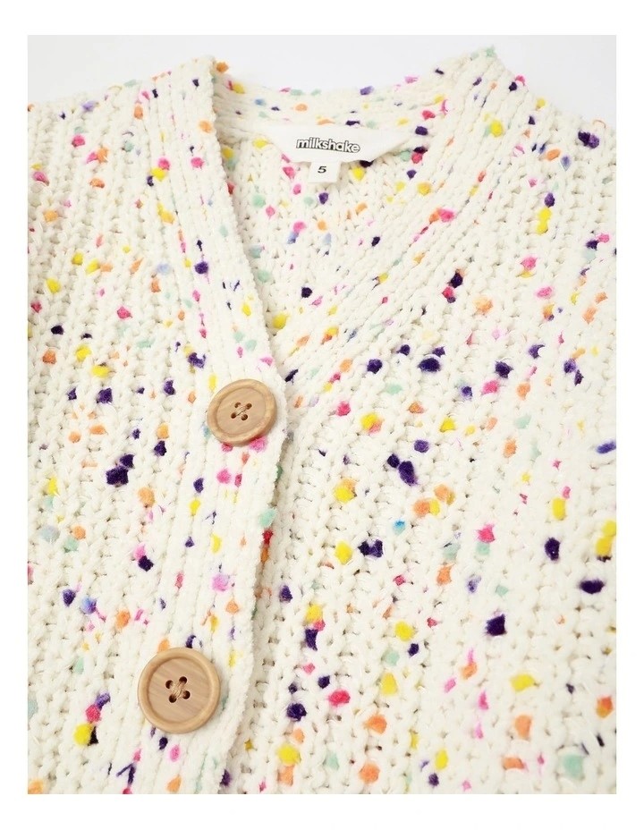MILKSHAKE Multi-coloured Nep Cardigan. Size: 7. Colour: Cream.