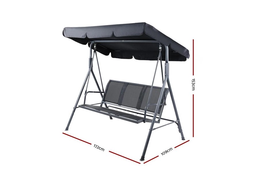 Gardeon Outdoor Swing Chair Garden Bench Furniture Canopy 3 Seater - Black. Lot No: 0201-3140585 |
