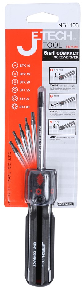 JETECH 6 IN 1 Compact Screwdriver With Twist Lock Selection Sizes See Image