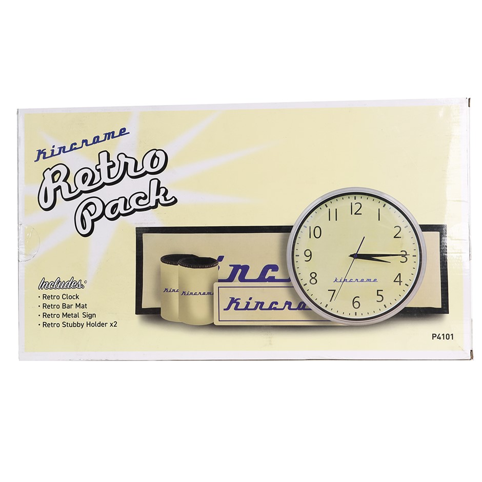 KINCROME Retro Pack, incl. Clock, Bar Mat, Metal Sign and 2x Stubby Holder.