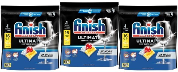 3 x FINISH Ultimate Pro Dishwasher Tablets, Lemon Sparkle, 16 Tablets.