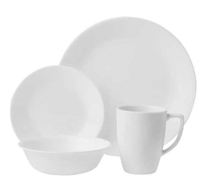 CORELLE Classic 16 Piece Dinnerware Set, Winter Frost White.
