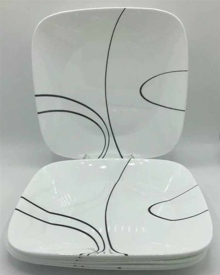 CORELLE Simple Lines Square Dinner Plates, Ultra Vitrelle, Set Of 6, Black