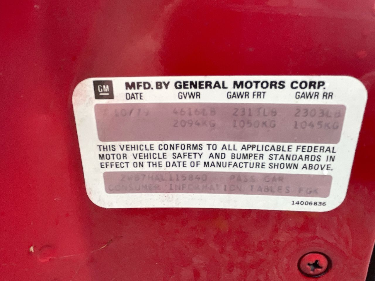 (SN:2W87HAL115840)