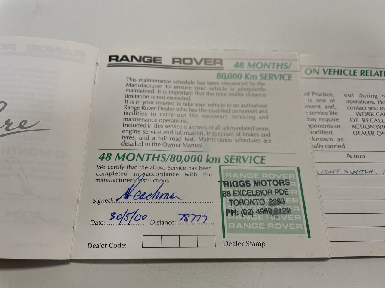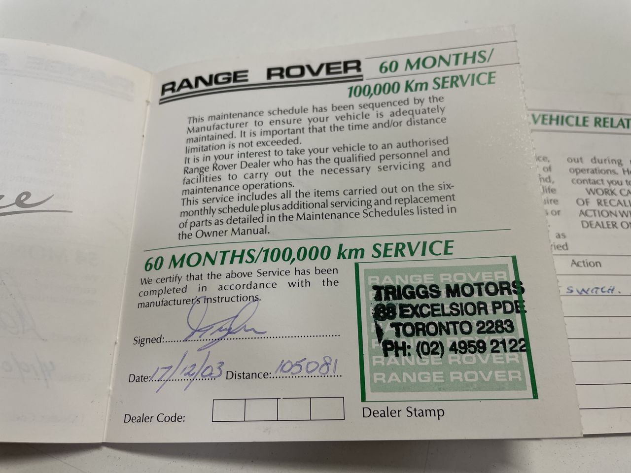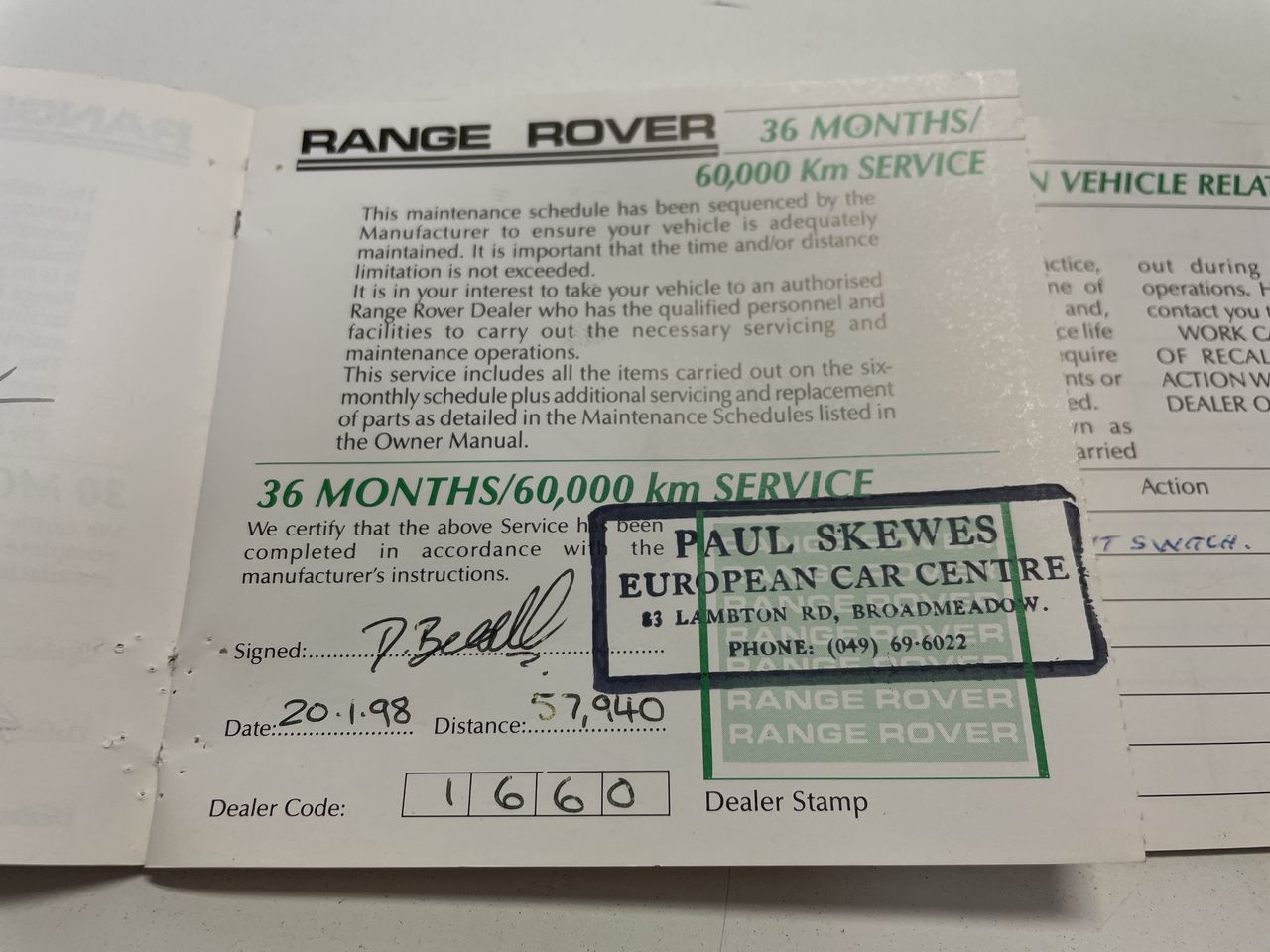 • Service History: Yes