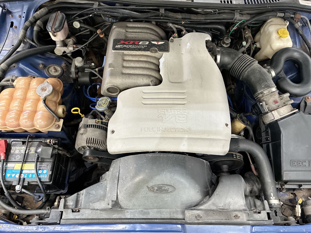 The ED XR8 Sprint was made in Australia in 1993-1994, with only 356 units produced, including 184 manuals and 172 automatics. Of these, 300 were sold in Australia and 56 were exported to New Zealand. It was a performance-enhanced version of the standard XR8, featuring a 5.0-litre Windsor V8 engine, upgraded parts, and a stripped-down interior to reduce weight.